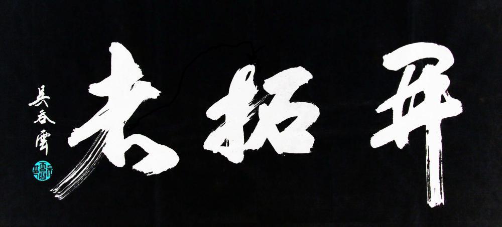 题:《开拓者》杂志。原作品是采用高档红色宣纸书写。